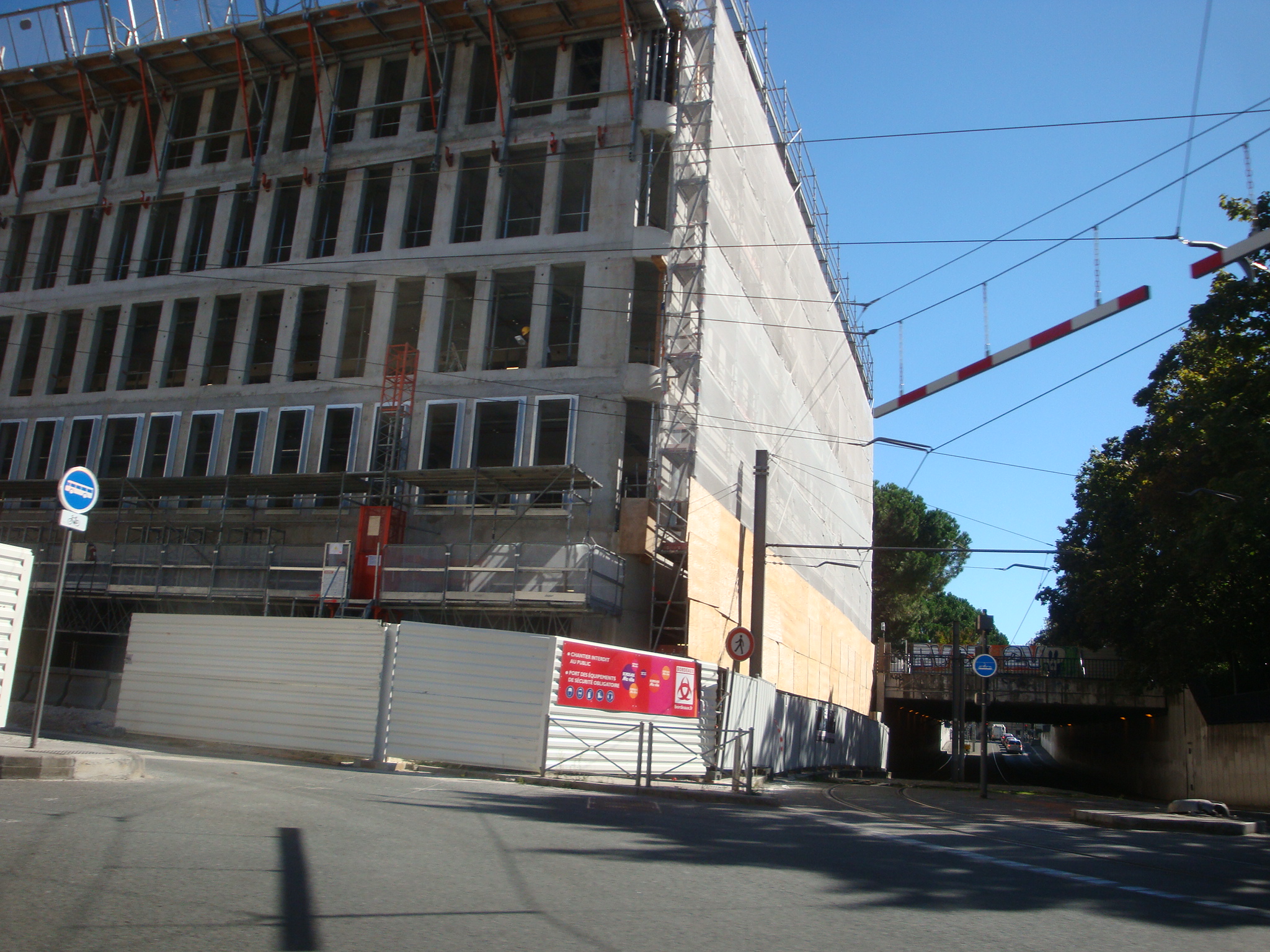Le chantier de la Cité Municipale, après divers retards dus aux recours et aux conditions climatiques difficiles pour créer ses fondations fonctionne à pleine vitesse en 2×8. Durant l’été le bâtiment a déjà gagné 5 niveaux et montre son immensité mais aussi son côté massif que la pierre de Bordeaux en façade devrait atténuer. A la fin de ce chantier les connexions avec Mériadeck et la ville ancienne devraient être remaniées.
