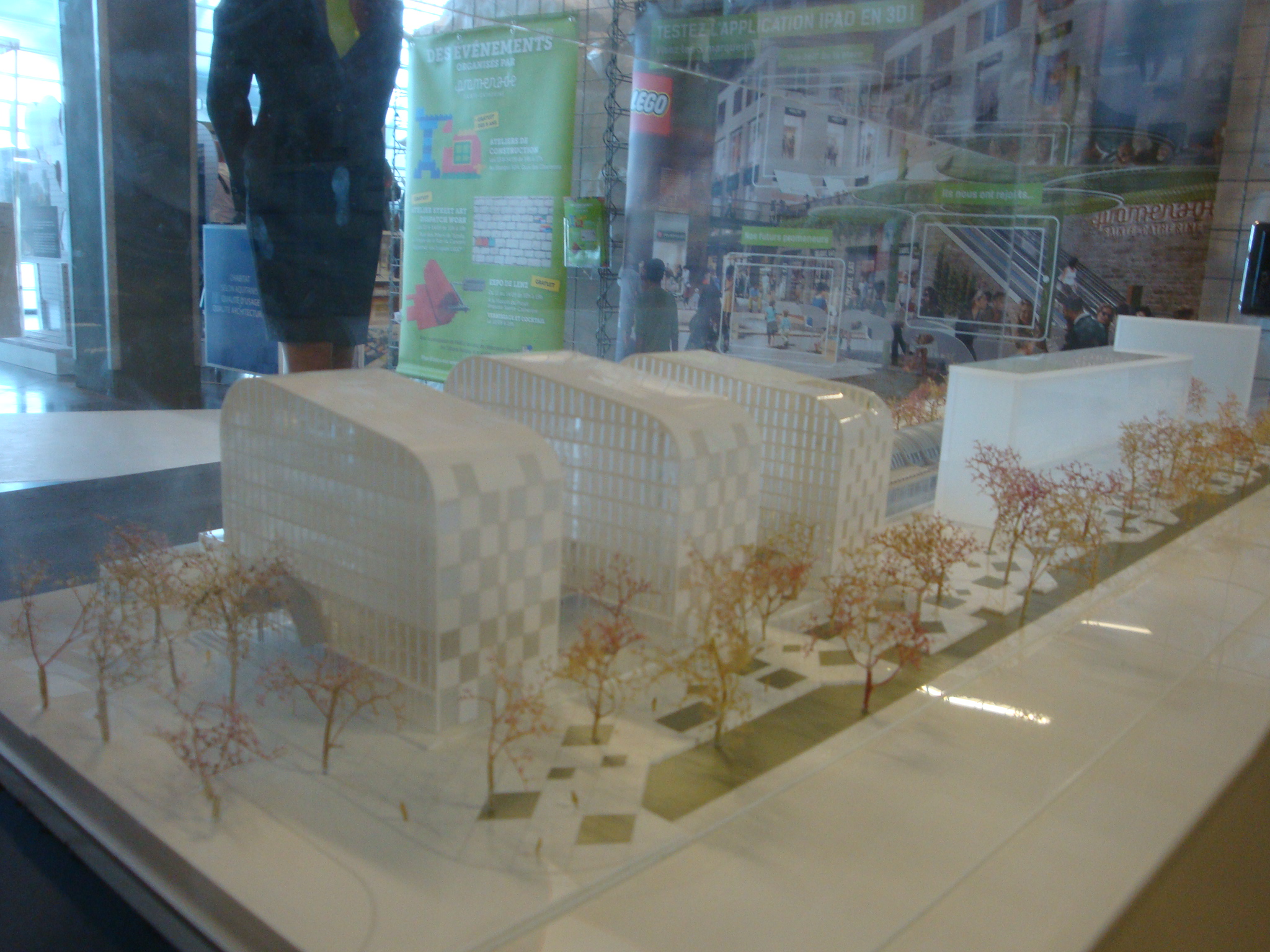 Enfin le clou de la biennale était Euratlantique, après des années de gestation, un nouveau directeur depuis septembre, le projet semble s’accélérer tandis que la LGV avance à grands pas, le gros œuvre étant presque achevé, le pont sur la Dordogne par exemple de plus d’un kilomètre attaque sa phase de pose des rails. Tandis que le chantier du bouchon ferroviaire (mise à 4 voies entre Bordeaux et Cenon) avance bien, les finitions étant en cours. Il y avait sur le stand la maquette de Garonne Eiffel dont nous devrions voir sous peu les lauréats pour le siège social de Fayat (relocalisé sur place), de la caserne des pompiers près du pont Saint jean et de la future mosquée de Bordeaux. Le parc des berges est même déjà en travaux entre les ponts de Pierre et Saint Jean, la ZAC Garonne Eiffel devant être créée sous peu. La maquette de Garonne Eiffel est immense et les projets vont débuter.