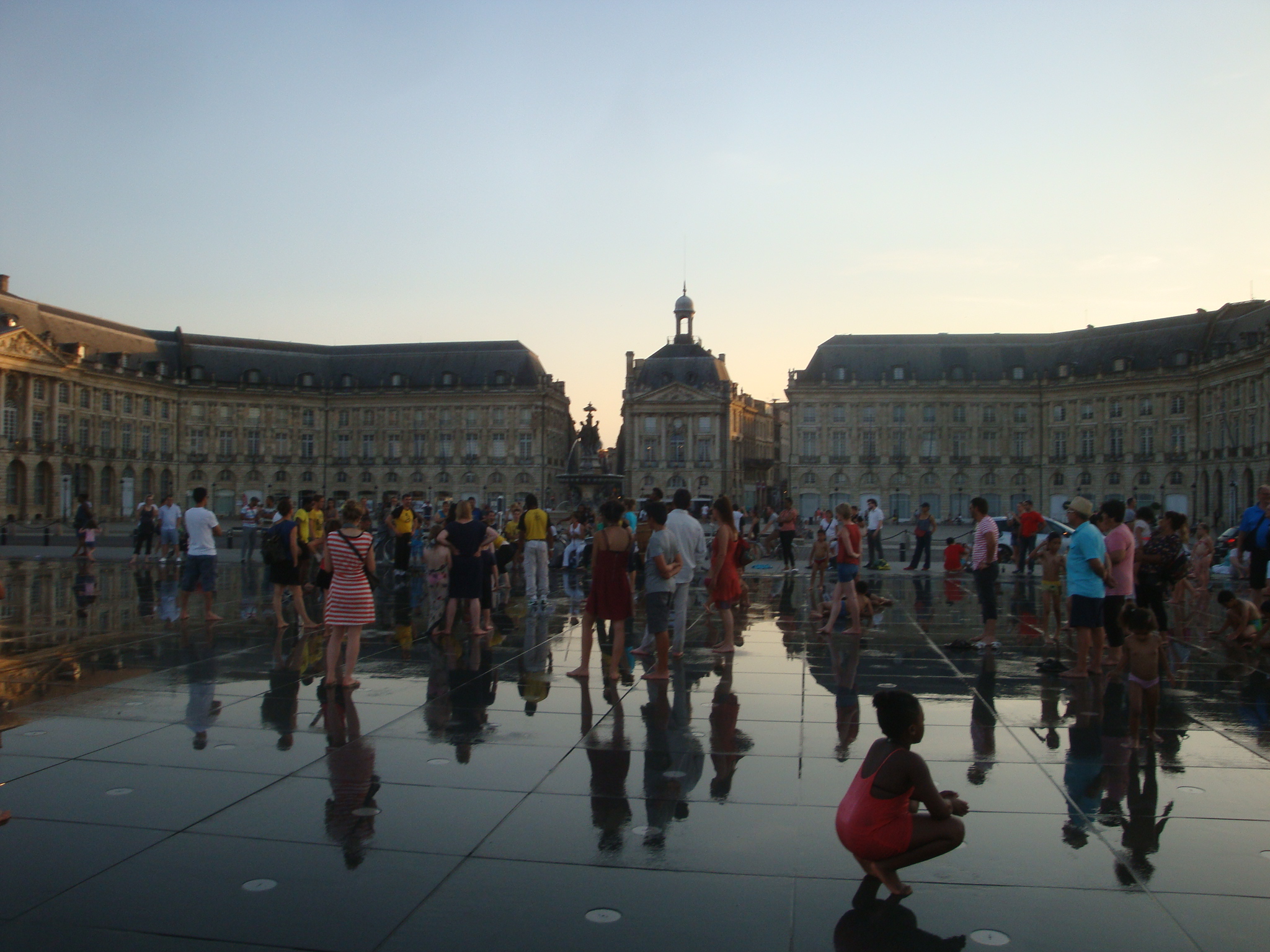 Cependant après le choc pétrolier et la fin du boom économique des 30 glorieuses, certains projets lancés ont été hélas mis en suspens (Bordeaux Lac). Pour d’autres cela a évité de défigurer le sud de la ville: rocade intérieure rive gauche entre le pont Saint Jean et la bibliothèque de Mériadeck… Après 50 ans de règne Bordeaux avait besoin de renouveau. Arrivé en 1995, la ville a eu la chance d’avoir un maire (et des présidents d’agglomération) bâtisseurs et volontaires. Ceux-ci quelque soit leur bord politique ont travaillé globalement ensemble, en coordination avec les villes en périphérie (la fameuse « Co-Gestion »). Ci-dessous le miroir d’eau et le Cours de l’Intendance, symboles de cette réussite.